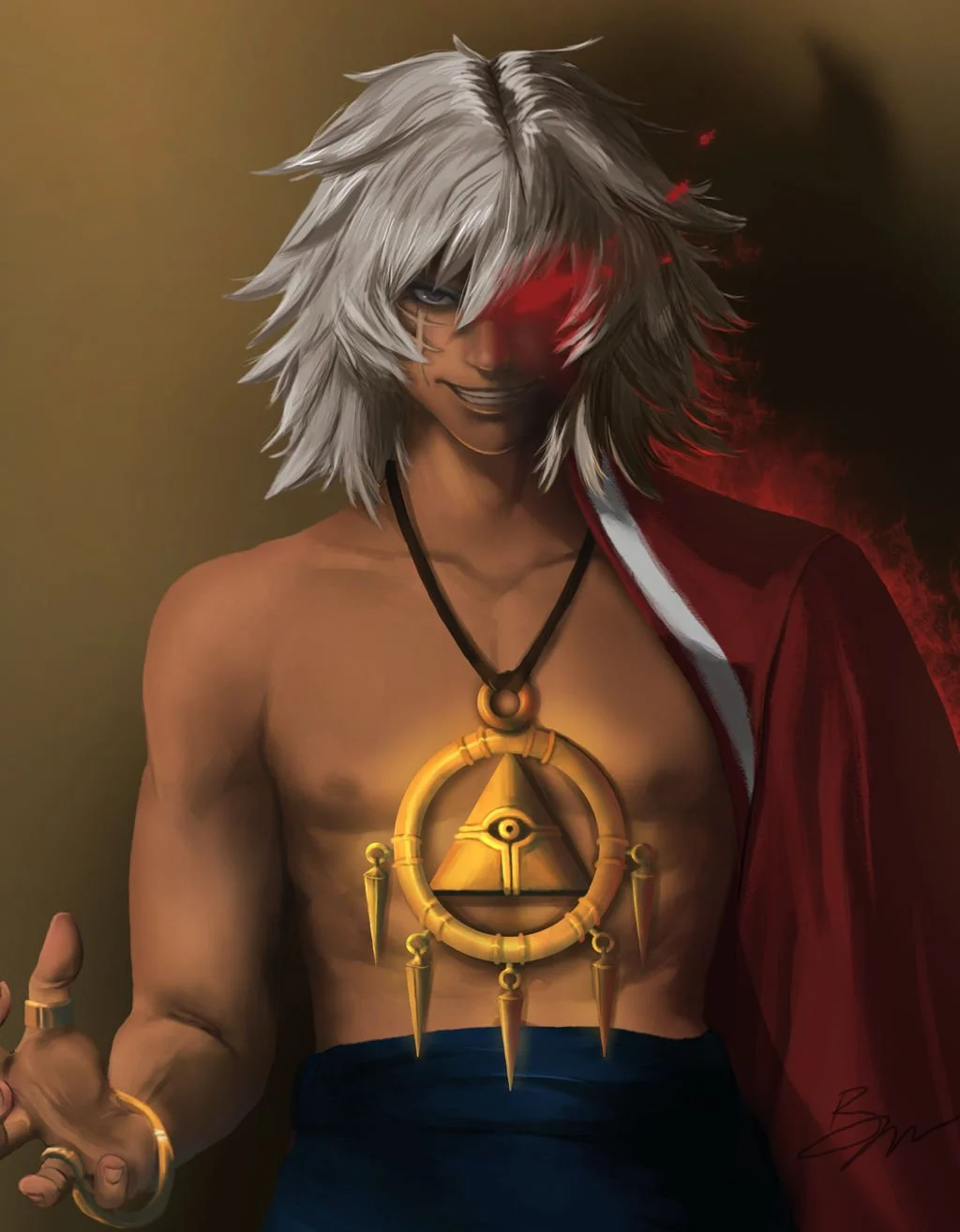 Bandit King Bakura is known for his cunning, manipulative nature, and relentless pursuit of power. He is a master of dark magic, using it to manipulate events and challenge Pharaoh Atem in a series of shadow games. His powers are deeply tied to the Millennium Items, which he seeks to control to exact his revenge.