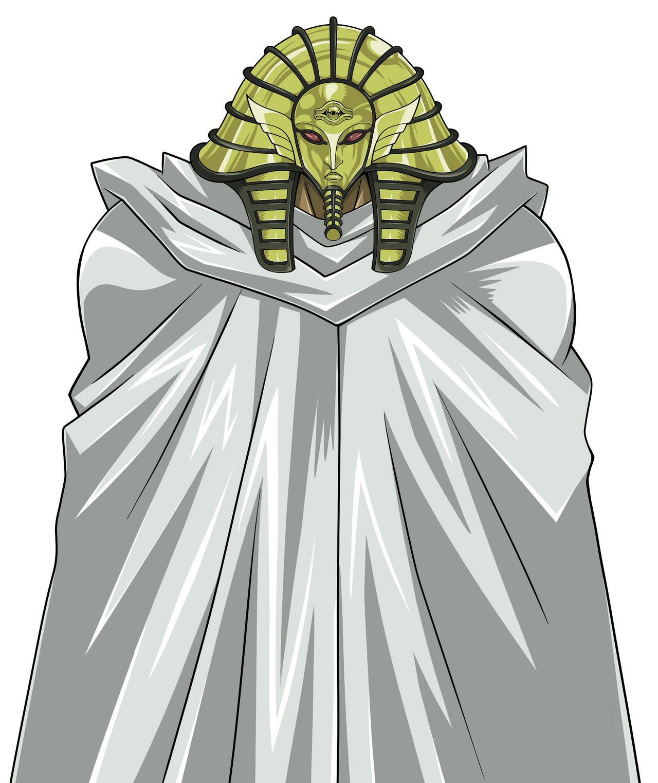 He protected Atem and his guards from one of Zorc's attacks and later died from of his later attacks, revealing his face, Shadi.